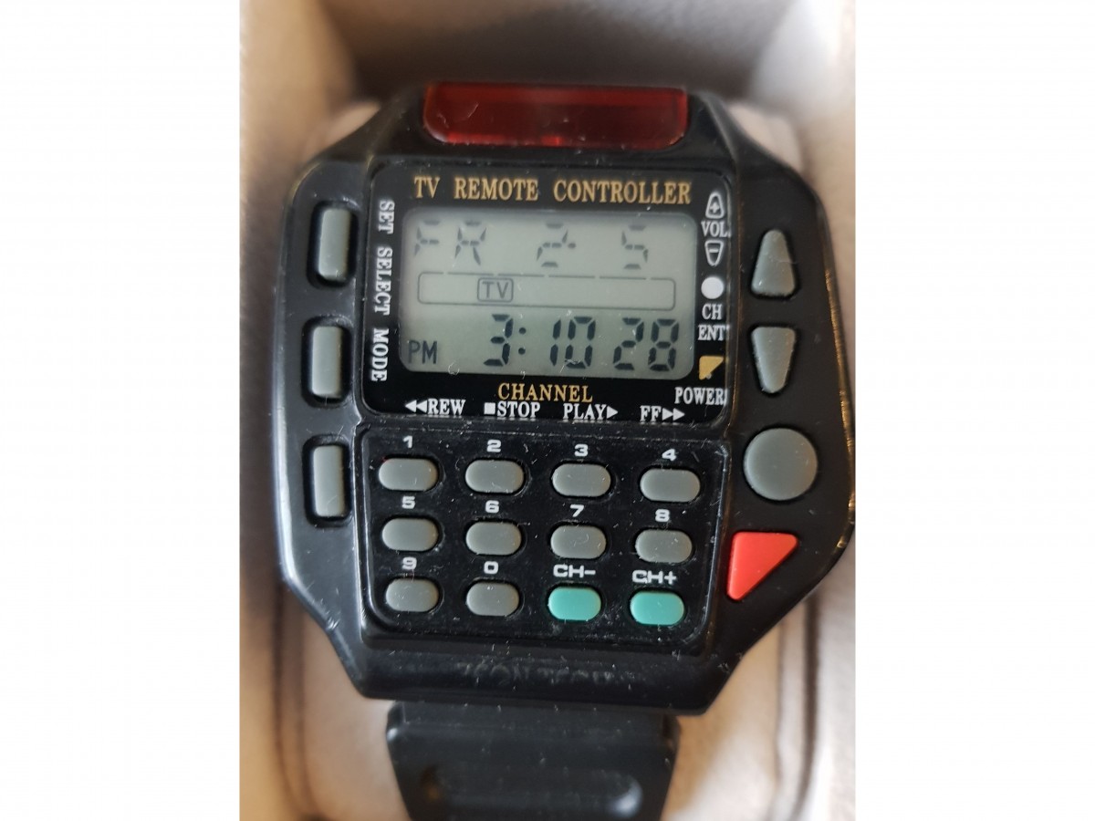 Zegarek z pilotem który po zaprogramowaniu mógł sterować telewizorem.